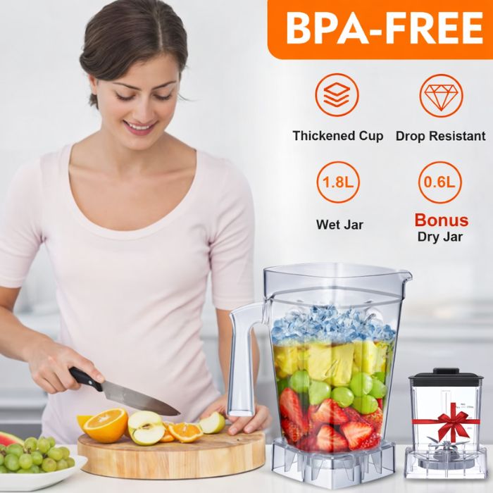 Experience blending at its finest with the BioloMix Power Blender. Built for power, precision, and everyday convenience, this BPA-free blender features a large 1.8L wet jar and a bonus 0.6L dry jar for grinding nuts, grains, coffee, and more. The 6 stainless steel blades crush ice and fruits with ease, while the variable speed and pulse control let you customize every blend. From smoothies and juices to baby food, sauces, and nut butters, this all-in-one blender is a reliable addition to any kitchen.
