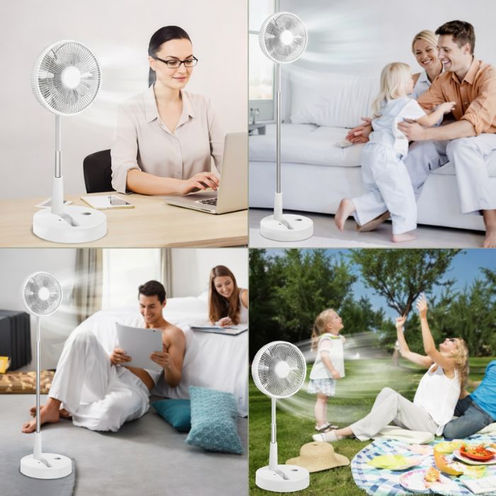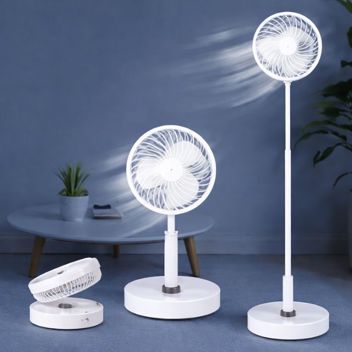 Stay cool anywhere with this Portable Foldable Telescopic Fan, a compact yet powerful cooling solution that effortlessly transitions between a desk fan and a floor-standing fan. Designed for versatility, it features a collapsible body, adjustable height, and 180° tilt—perfect for bedrooms, offices, dorms, picnics, camping, or travel.