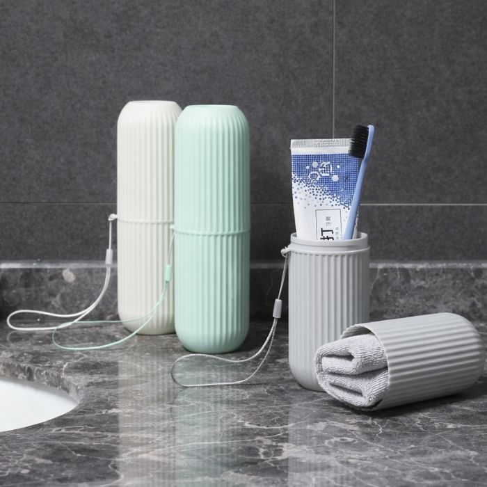 Stay organized and hygienic on the go with our Ribbed Travel Toothbrush Case. Designed with style and practicality in mind, this 4-in-1 travel essential includes two interlocking cups that double as holders for your toothbrush, toothpaste, and other small toiletries. Made from durable, eco-friendly plastic, its ribbed texture provides a non-slip grip while adding a touch of modern elegance.