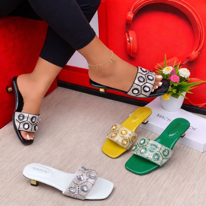 The slip-on design makes them easy to wear, while the cushioned sole ensures comfort throughout the day. Ideal for casual outings, parties, workwear, or special occasions, these sandals effortlessly elevate dresses, skirts, jeans, or traditional outfits.