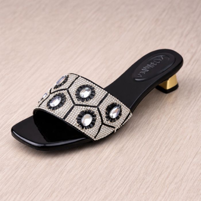Add elegance to your everyday look with our Women’s Low-Heel Slide Sandals. Designed with a sparkling decorative strap and a comfortable low block heel, these sandals offer the perfect balance of style and support.